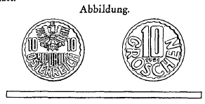 Gemäß Verordnung BGBl. Nr. 427/1979, sind die gemäß Verordnung BGBl. Nr. 241/1951 auszugebenden Scheidemünzen zu 10 Groschen aus Aluminium aus technischen Gründen auch ohne Magnesiumgehalt von 1,5 v. H. auszuprägen.