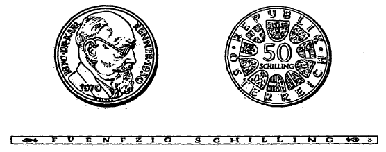 § 2 Scheidemünzen zu 50 Schilling 100. Geburtstag von Bundespräsident Dr. Karl Renner“