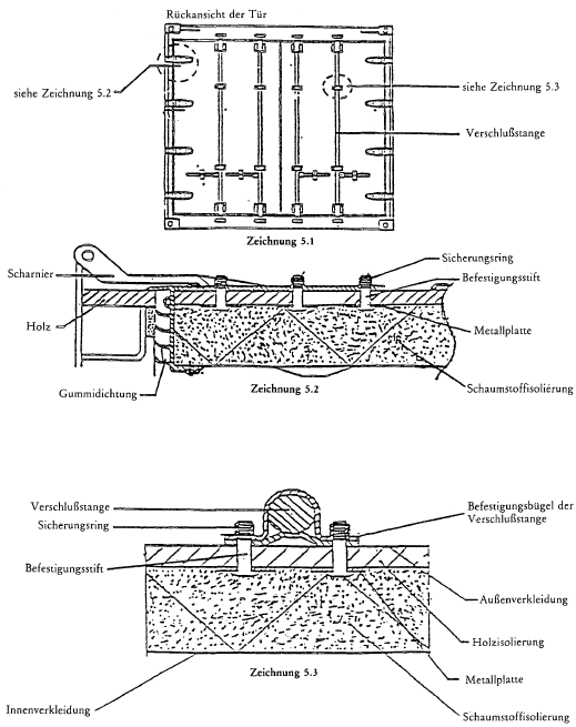 Beispiel einer Befestigungsvorrichtung, die von der Innenseite der isolierten Tür angebracht wird