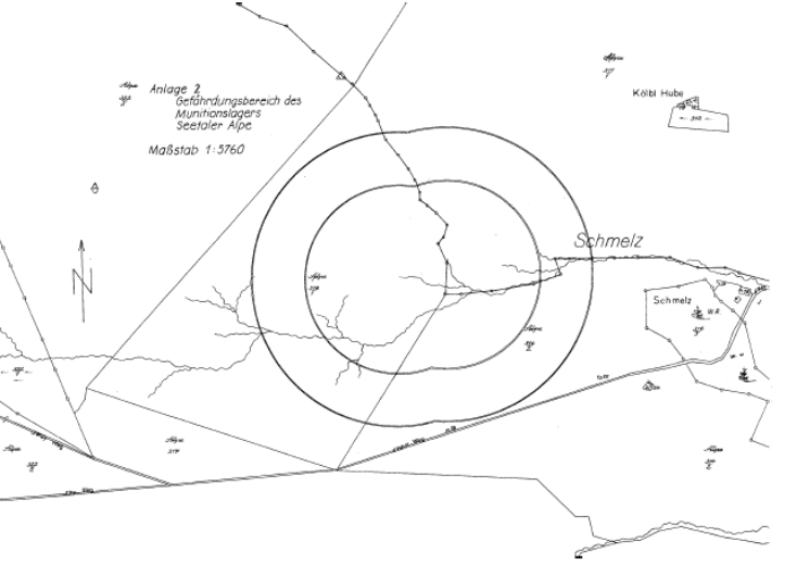 Gefährdungsbereich des Munitionslagers Seetaler Alpe