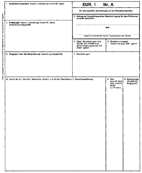 WARENVERKEHRSBESCHEINIGUNG EUR.1 UND ANTRAG AUF EINE WARENVERKEHRSBESCHEINIGUNG EUR.1