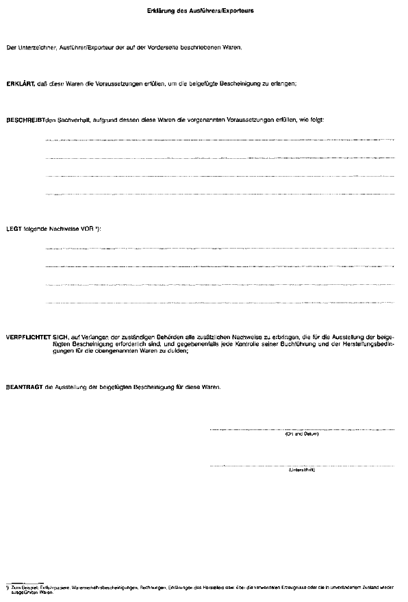 ANTRAG AUF AUSSTELLUNG EINER WARENVERKEHRSBESCHEINIGUNG