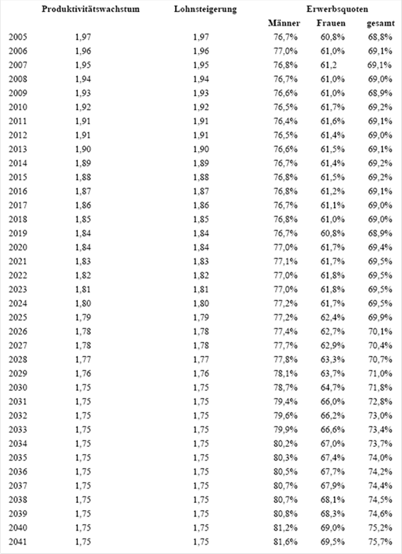 Parameter für Langfristszenarien 2004: Erwerbsquoten