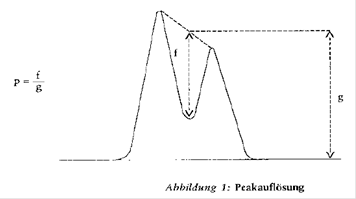 - Peakauflösung: Die Peakauflösung soll mindestens 0,90 betragen (zur Definition der Peakauflösung siehe Abbildung 1).