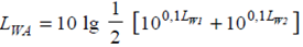 LpA = 10 lg {0.3 × 10 0.1 LpA,0% + 0.7 × 100.1 LpA,100%}