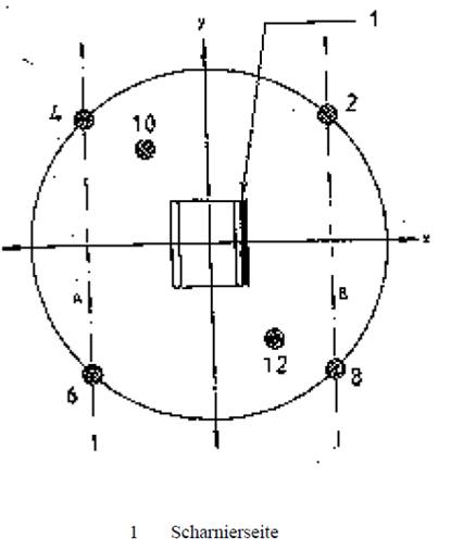 Die Anzahl (12) der Mikrophone kann auf 6 verringert werden, aber die Mikrophonpositionen 2, 4, 6, 8, 10 und 12 entsprechend den Anforderungen des Abschnitts 7.4.2 von EN ISO 3744:1995 müssen auf jeden Fall verwendet werden.