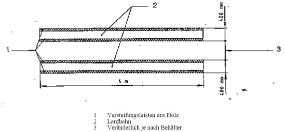 Der Transportbetonmischer ist im Stand zu prüfen. Die Trommel wird bis zum Erreichen des Nenninhalts mit Beton von mittlerer Konsistenz (Ausbreitungsmaß 42 bis 47 cm) gefüllt. Der Antrieb der Trommel läuft mit der Drehzahl, bei der die Trommel die höchste in der Bedienungsanleitung angegebene Drehgeschwindigkeit erreicht.