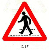 1. Das Zeichen [Signal] „FUSSGÄNGERÜBERGANG" (I, 17) wird aufgestellt, wenn die zuständigen Behörden es für notwendig erachten, einen Fußgängerübergang anzuzeigen. Die Art der Kennzeichnung dieser Übergänge bestimmen die zuständigen Behörden.