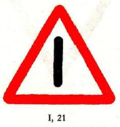 2. Auf dem Zeichen [Signal] kann jedoch an Stelle des Symbols eine Aufschrift in schwarzer oder dunkler Farbe angebracht sein, die die Gefahr näher bezeichnet, wie beschränkte lichte Höhe oder Breite, Fähre oder Steinschlag.