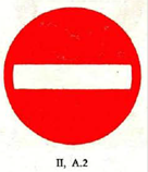 1. b) das Zeichen [Signal] „EINFAHRT VERBOTEN" (II, A. 2); dieses Zeichen ist rot mit einem weißen oder hellfarbigen waagrechten Querbalken;