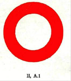 1. a) das Zeichen [Signal] „FAHRVERBOT (IN BEIDEN RICHTUNGEN)" (II, A. 1);