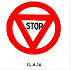 2. Dieses Zeichen [Signal] besteht aus einem roten Dreieck mit einer Spitze nach unten, das von einem roten Kreis umschlossen ist. Das Dreieck kann wie in Abbildung II, A. 16 das Wort „Stop" enthalten.