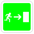 - –Notausgänge durch folgendes Fluchtweghinweiszeichen: