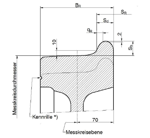 7) Bei speziellen Laufwerken mit “geschwächtem Spurkranz" werden die Werte für die Spurkranzdicke Sd unterschritten.