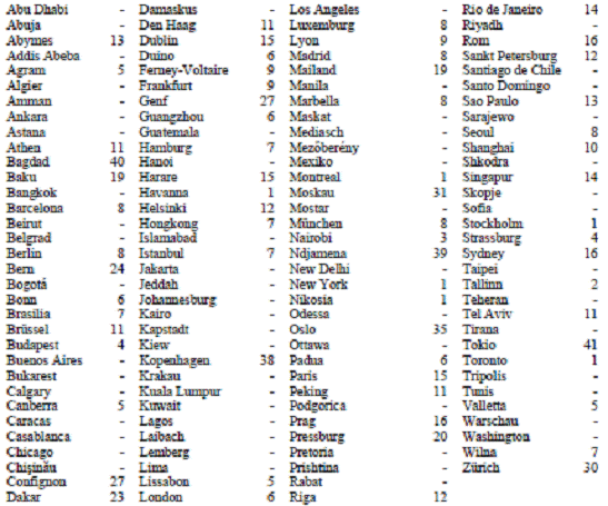 Für nachstehend angeführte Dienstorte im Ausland wird der Hundertsatz für die Bemessung von Kaufkraftausgleichszulagen nach § 21b Abs. 1 GehG für den Monat Februar 2010 wie folgt festgesetzt: