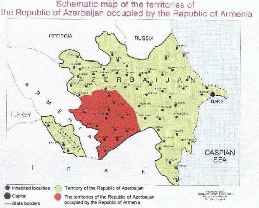 Schematische Karte der besetzten Gebiete der Republik Aserbaidschan