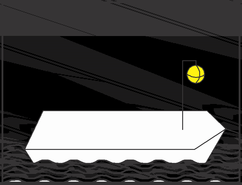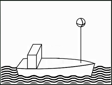 | ein weißer Ball mindestens 1 m über dem Schiffskörper |