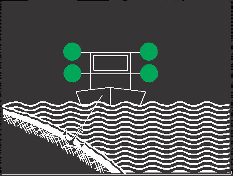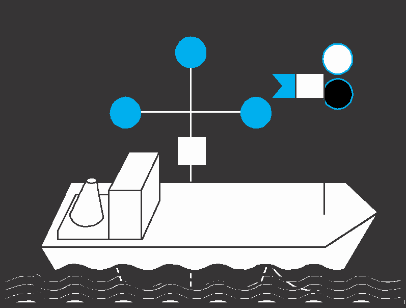 § 53 Abs. 1 Z 3 und 4 sowie Abs. 4, Schwimmende Geräte in Betrieb und stillliegende Fahrzeuge, die Arbeiten, Peilungen oder Messungen ausführen, und die gegen Wellenschlag zu schützen sind, sowie festgefahrene oder gesunkene Fahrzeuge: | ||
