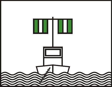 § 54 Abs. 3, Beispiel für die Bezeichnung von schwimmenden Geräten, deren Kabel, Ankerketten oder Anker die Schifffahrt gefährden können: | ||