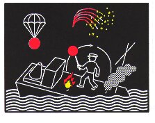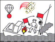 § 58, Notzeichen: eine Flagge oder ein sonstiger geeigneter Gegenstand, die im Kreis geschwenkt werden; oder: ein licht, das im Kreis geschwenkt wird; oder: eine Flagge über oder unter einem Ball oder ballähnlichen Gegenstand; oder: Raketen oder Leuchtkugeln mit roten Sternen in kurzen Zwischenräumen; oder: ein Lichtzeichen, zusammengesetzt aus den Morsezeichen ... ‑-- ... (SOS); oder: ein Flammensignal durch Abbrennen von Teer, Öl oder ähnlichem; oder: rote Fallschirm-Leuchtraketen oder rote Handfackeln; oder: langsames und wiederholtes Heben und Senken der seitlich ausgestreckten Arme | ||