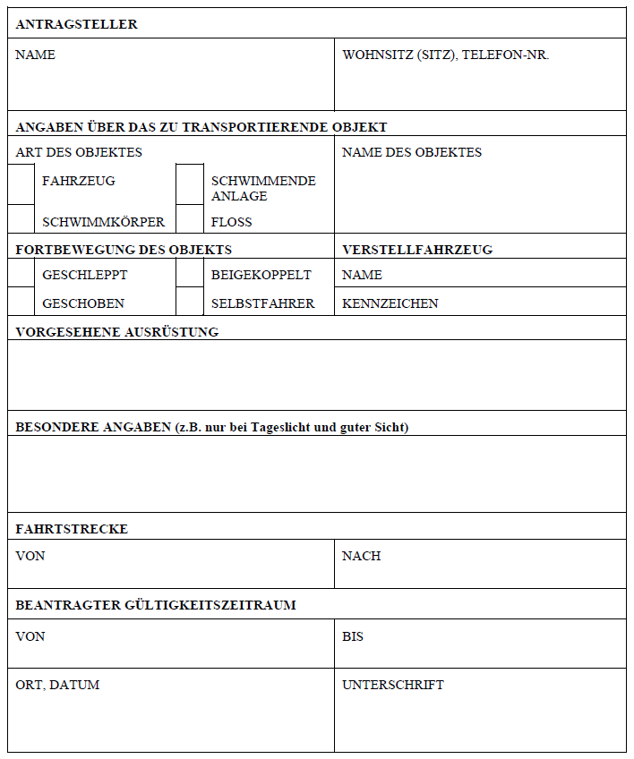 ANTRAG auf eine Fahrterlaubnis für Sondertransporte