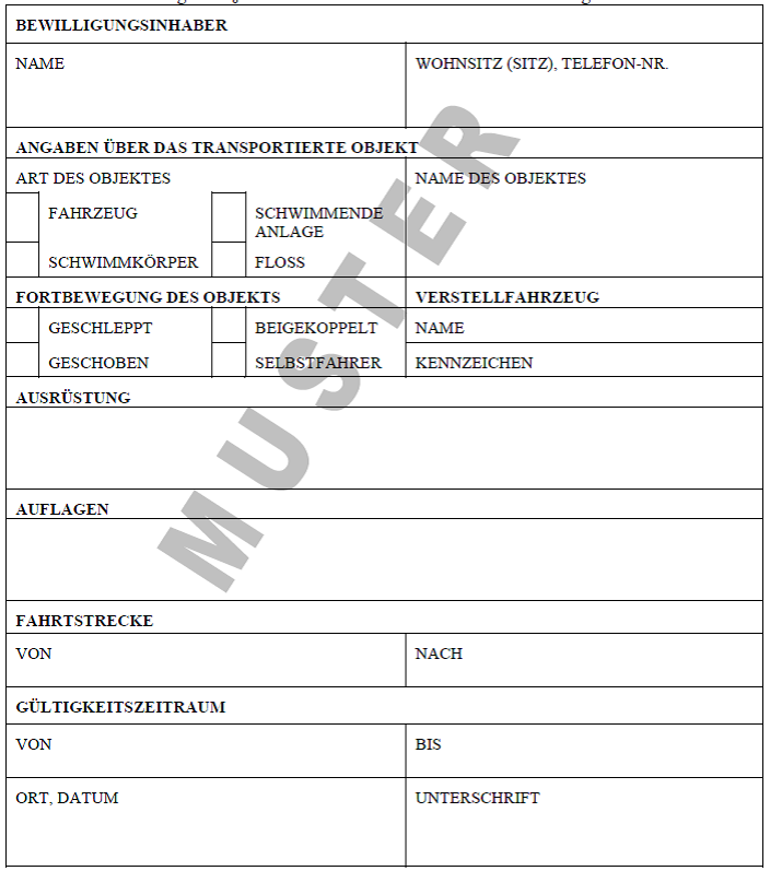 Der Fahrterlaubnisschein ist beim Transport an Bord mitzuführen