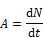Aktivität A: die Aktivität einer Menge eines Radionuklids in einem bestimmten Energiezustand zu einer gegebenen Zeit. Es handelt sich um den Quotienten aus dN und dt; dabei ist dN der Erwartungswert der Anzahl der Kernumwandlungen aus diesem Energiezustand im Zeitintervall dt: