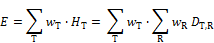 Dabei ist DT,R die über ein Gewebe oder ein Organ T gemittelte Energiedosis durch die Strahlungsart R, wR der Strahlungswichtungsfaktor und wT der Gewebewichtungsfaktor für das Gewebe oder Organ T. Die wT- und wR-Werte sind in Abschnitt B angegeben.