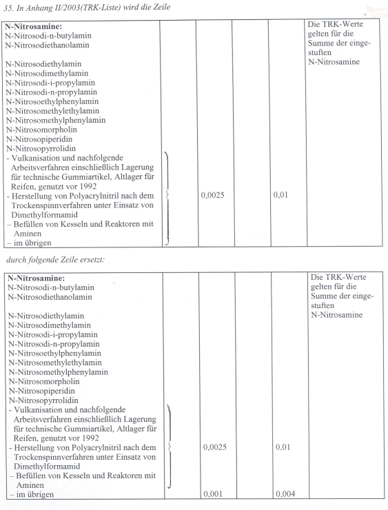 34. In Anhang II/2003 (TRK-Liste) wird die Zeile