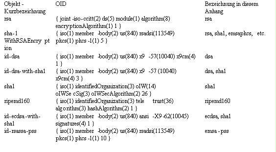 Einige der in diesem Anhang gegebenen Algorithmen sind über Objektidentifikatoren registriert. Diese werden als Information in Tabelle 1b wiedergegeben.