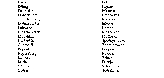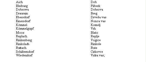 § 1. In folgenden Gebietsteilen sind Bezeichnungen und Aufschriften topographischer Natur, die von Gebietskörperschaften oder von sonstigen Körperschaften und Anstalten des öffentlichen Rechts angebracht werden, sowohl in deutscher als auch in slowenischer Sprache wie folgt anzubringen: