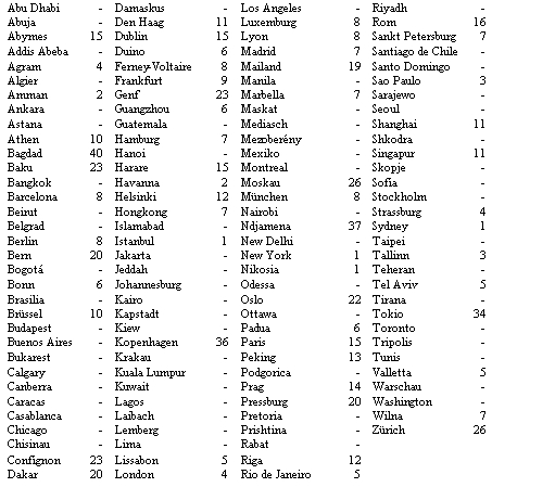 Für nachstehend angeführte Dienstorte im Ausland wird der Hundertsatz für die Bemessung von Kaufkraftausgleichszulagen nach § 21b Abs. 1 GehG für den Monat Juni 2009 wie folgt festgesetzt: