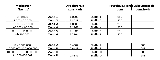 (6) Für den Netzbereich Vorarlberg werden folgende Ausgleichszahlungen festgelegt: