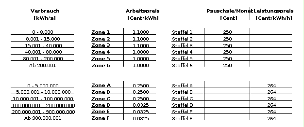 „(8) Für das von Entnehmern zu entrichtende Netznutzungsentgelt werden folgende Tarife bestimmt:
