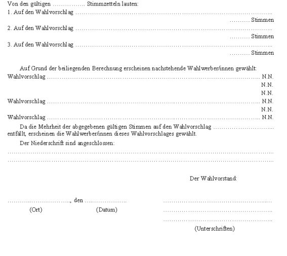 bb) Anlage 5 erhält in der signierten authentischen Fassung vom Textteil „Von den gültigen …………… Stimmzetteln lauten“ bis zu „(Unterschriften)“ folgendes Aussehen: