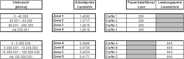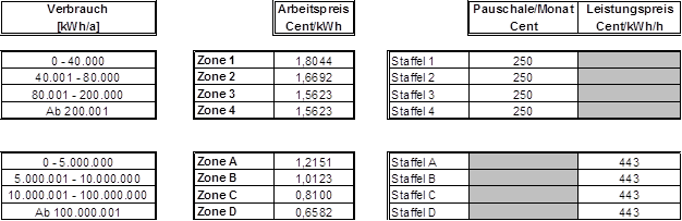 (5) Für den Netzbereich Tirol werden folgende Ausgleichszahlungen festgelegt: