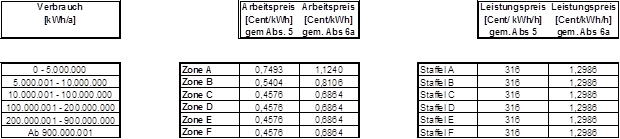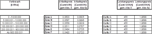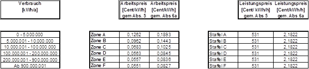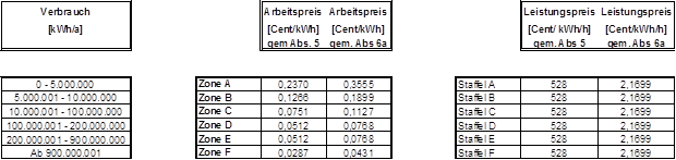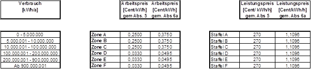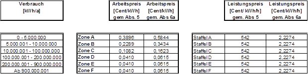 (6) Für den Netzbereich Vorarlberg werden folgende Ausgleichszahlungen festgelegt: