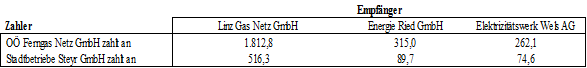 (3) Für den Netzbereich Oberösterreich werden folgende Ausgleichszahlungen festgelegt: