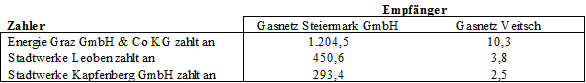 (4) Für den Netzbereich Steiermark werden folgende Ausgleichszahlungen festgelegt: