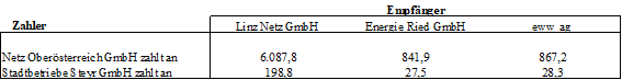 (3) Für den Netzbereich Oberösterreich werden folgende Ausgleichszahlungen festgelegt: