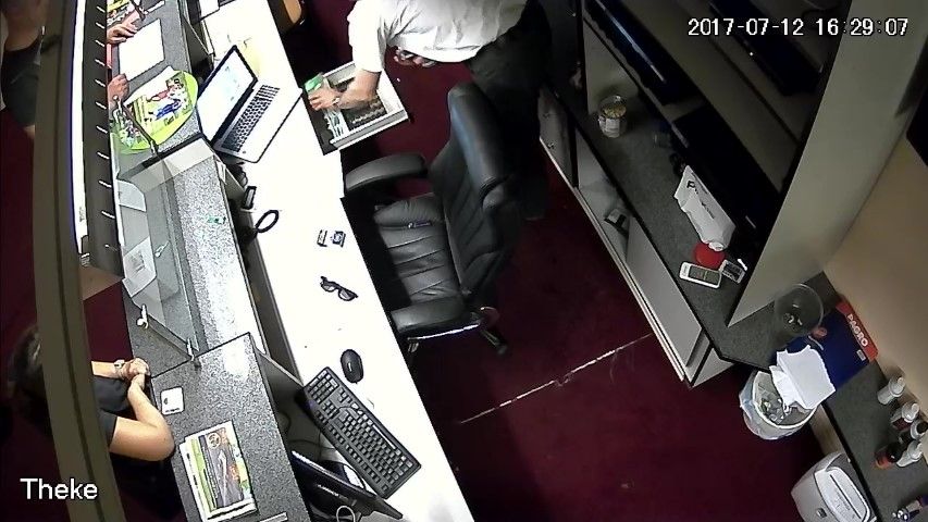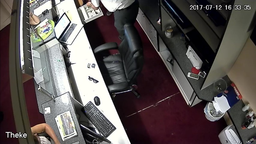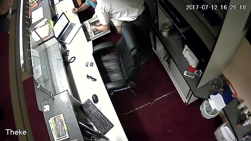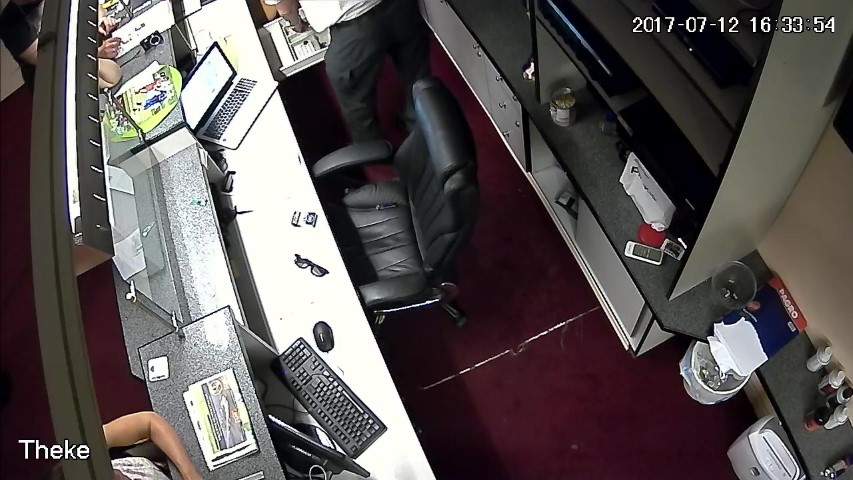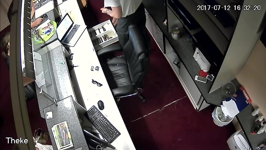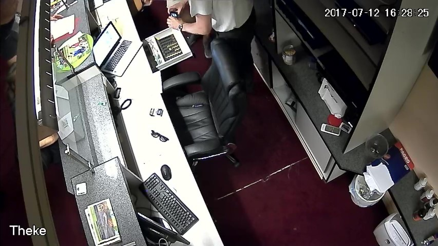 F.13. 16:28:03 Uhr: D öffnet die Geldlade des Tresens.