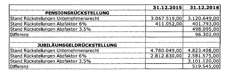 6. Der Bildung der Pensionsrückstellung ist ein Rechnungszinsfuß von 6 % zugrunde zu legen."