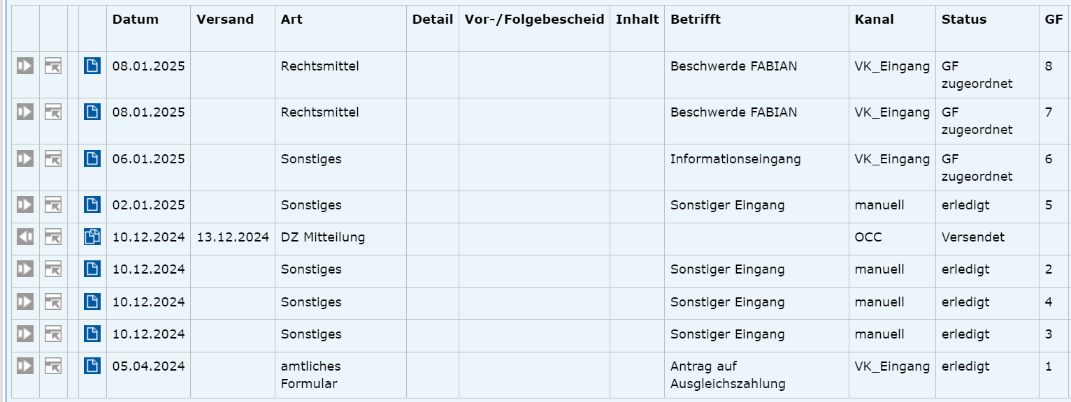 - 1. Am 8.1.2025 wurde Beschwerde gegen den Ablehnungsbescheid vom 10.12.2024 erhoben (zweimal erfasst).