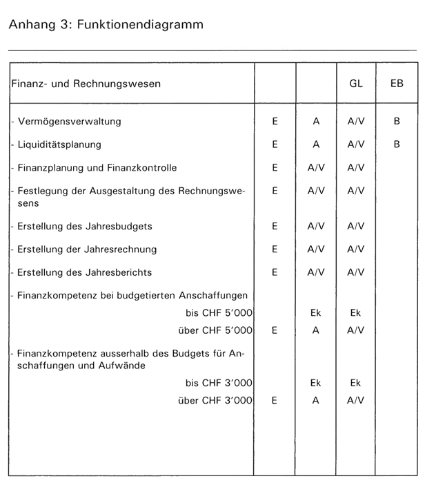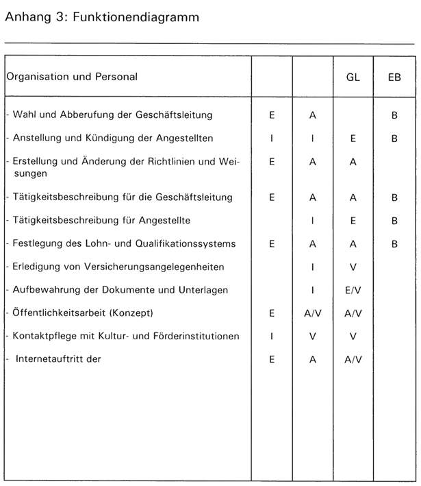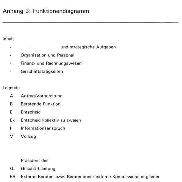Anhang 3 des Organisationsreglement der ***1*** enthält das Funktionendiagramm aus welchem die einzelnen Befugnisse und Kompetenzen von ***9*** und Geschäftsleitung ablesbar sind. Das Funktionendiagramm regelt die Aufgabenverteilung wie folgt: