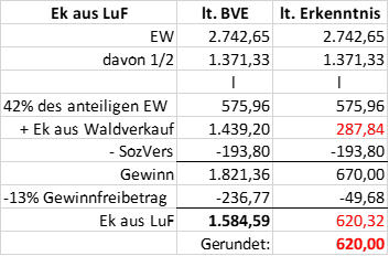 Neuberechnung Einkünfte aus Waldverkauf Grundstücks-Nummer IV durch das Bundesfinanzgericht: