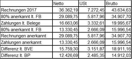 BVE-Umsatzsteuer 2017: -2.666,09 (bisher -3.332,61 Euro).