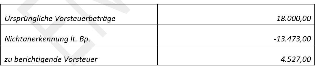 Auf Grund der Feststellung in Tz. 1 der ggstl. NS (Nichtanerkennung von Vorsteuern in Höhe von € 13.473,-) ändert sich die zu berichtigende Vorsteuer gem. § 12 (10) UStG wie folgt: