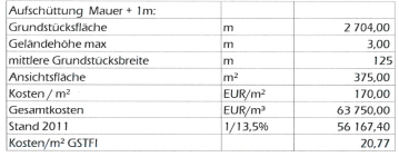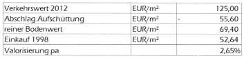 Abschließend wird darauf hingewiesen, dass sich in der ergänzenden Stellungnahme unter Ansatz der valorisierten Werte ein Mittelwert von EUR 130 pro m2 und nicht EUR 125 pro m2 errechnet.