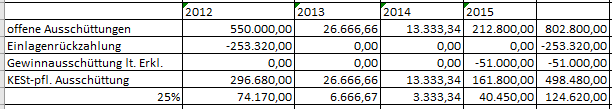 Da der rückgezahlte Betrag die steuerlichen Anschaffungskosten von St.E. übersteigt (siehe Anlage 2), liegen bei ihm Einkünfte gern. § 27 Abs. 3 EStG vor. Beim Gesellschafter S.E. werden in der Folge Einkünfte aus Kapitalvermögen angesetzt. Diese unterliegen dem besonderen Steuersatz vom 25% gem. § 27a Abs. 1 EStG.