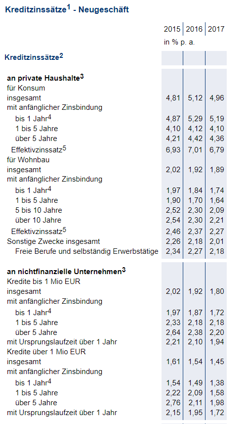 Aus der Sicht des Bundesfinanzgerichtes spiegeln die von der Österreichischen Nationalbank (OeNB) veröffentlichte Zinssätze für Kreditgeschäfte für Neugeschäfte der Jahre 2015 bis 2017 die Verhältnisse am Kapitalmarkt in geeignetster Weise wider. Die Daten basieren auf der wirtschafts- und währungsunionweit harmonisierten Zinssatzstatistik der Europäischen Zentralbank und zeigen jene Zinssätze, die von österreichischen Monetären Finanzinstitute (MFI) an ihre Kunden auf der Kreditseite verrechnet werden und das Neugeschäft betreffen, gewichtet nach Volumina.
